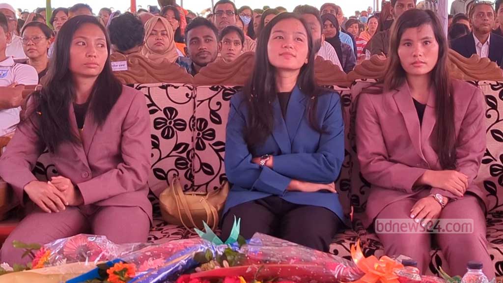 সাফজয়ী দলের অন্যতম সদস্য পাহাড়ের তিন কন্যা ঋতুপর্ণা চাকমা, রূপনা চাকমা ও মনিকা চাকমাকে রাঙামাটিতে সংবর্ধনা দেওয়া হয়েছে।